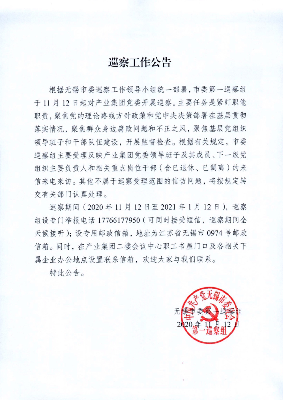 | 巡察工作公告 |