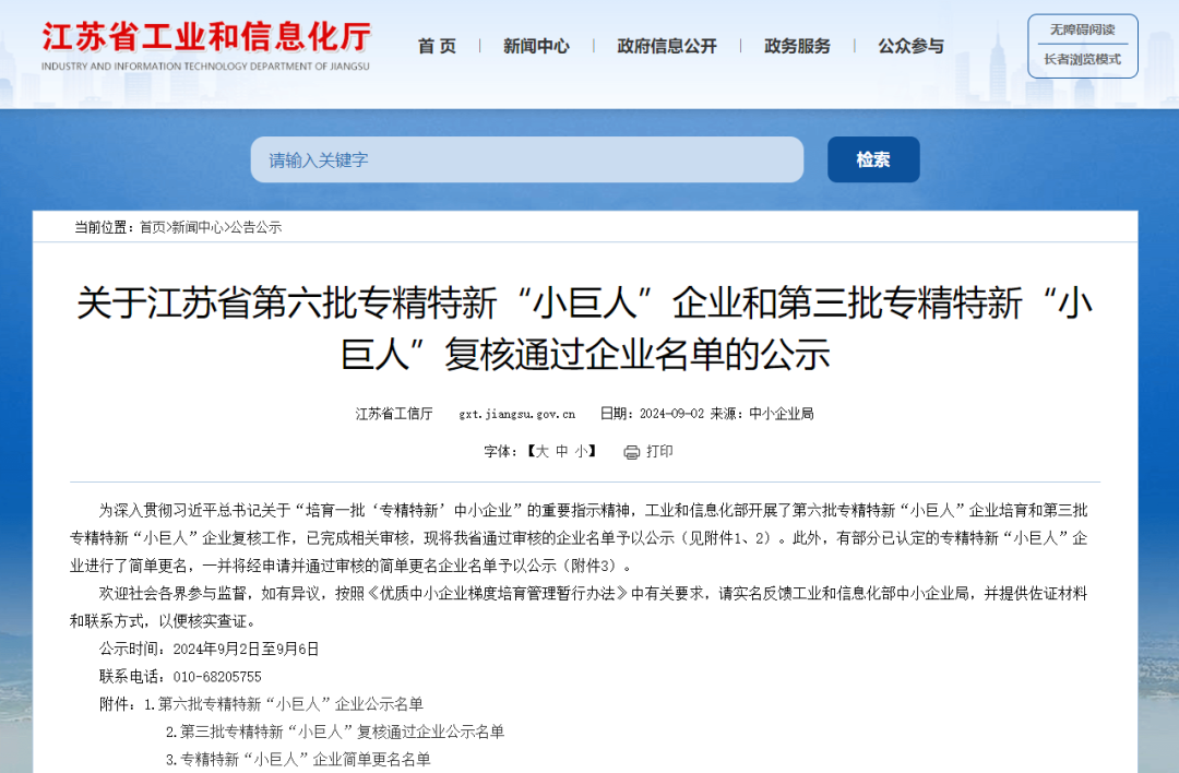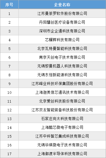 根據(jù)工信部統(tǒng)一部署,江蘇省工信廳于2024年9月2日發(fā)布了《關(guān)于江蘇省第六批專精特新“小巨人”企業(yè)和第三批專精特新“小巨人”復(fù)核通過(guò)企業(yè)名單的公示》,其中江蘇曼荼羅軟件股份有限公司、丹陽(yáng)慧創(chuàng)醫(yī)療設(shè)備有限公司、深圳市企企通科技有限公司等17家創(chuàng)投集團(tuán)被投企業(yè)入選第六批專精特新“小巨人”企業(yè)。