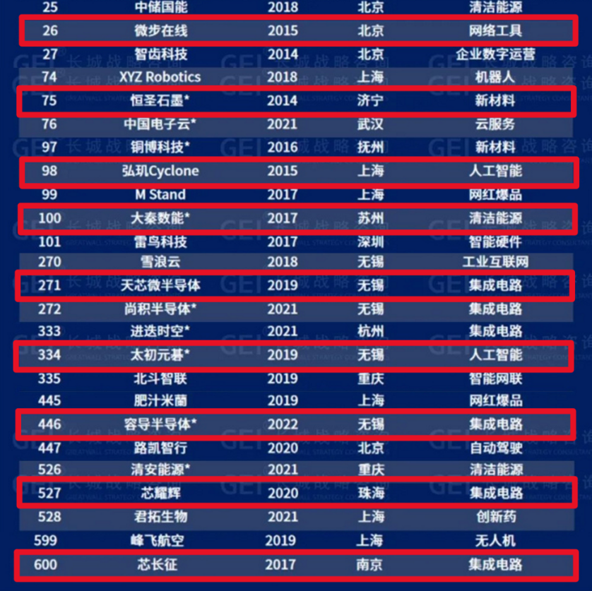 ![]() 長城戰(zhàn)略咨詢是國內(nèi)最早研究和發(fā)布“獨角獸”榜單的智庫機構(gòu),自2016年起連續(xù)多年發(fā)布中國獨角獸企業(yè)榜單及研究報告,自2020年起連續(xù)五年發(fā)布中國潛在獨角獸企業(yè)榜單及研究報告。GEI中國潛在獨角獸企業(yè)遴選依據(jù)《高成長企業(yè)分類導引》(GB/T 41464-2022)中潛在獨角獸企業(yè)標準: